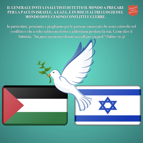 Il Generale invita i salutisti di tutto il mondo a pregare per la pace in Israele, a Gaza, e in molti altri luoghi del mondo dove ci sono conflitti e guerre.