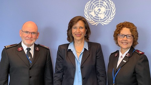 In un incontro con Melissa Fleming, Sottosegretario Generale per le Comunicazioni Globali dell'ONU (alle dirette dipendenze del Segretario Generale dell'ONU), le conversazioni hanno evidenziato lo stato attuale del mondo e il modo in cui l'Esercito della Salvezza può continuare a sostenere e collaborare con i 193 Stati membri dell'ONU nell'assistenza ai più poveri ed emarginati del mondo. L'attenzione è stata rivolta alla violenza di genere, all'abuso domestico, alle giovani bambine, alla riduzione della povertà, alla migrazione e agli sfollati - aree di missione e di ministero care all'impegno comunitario dell'Esercito della Salvezza.